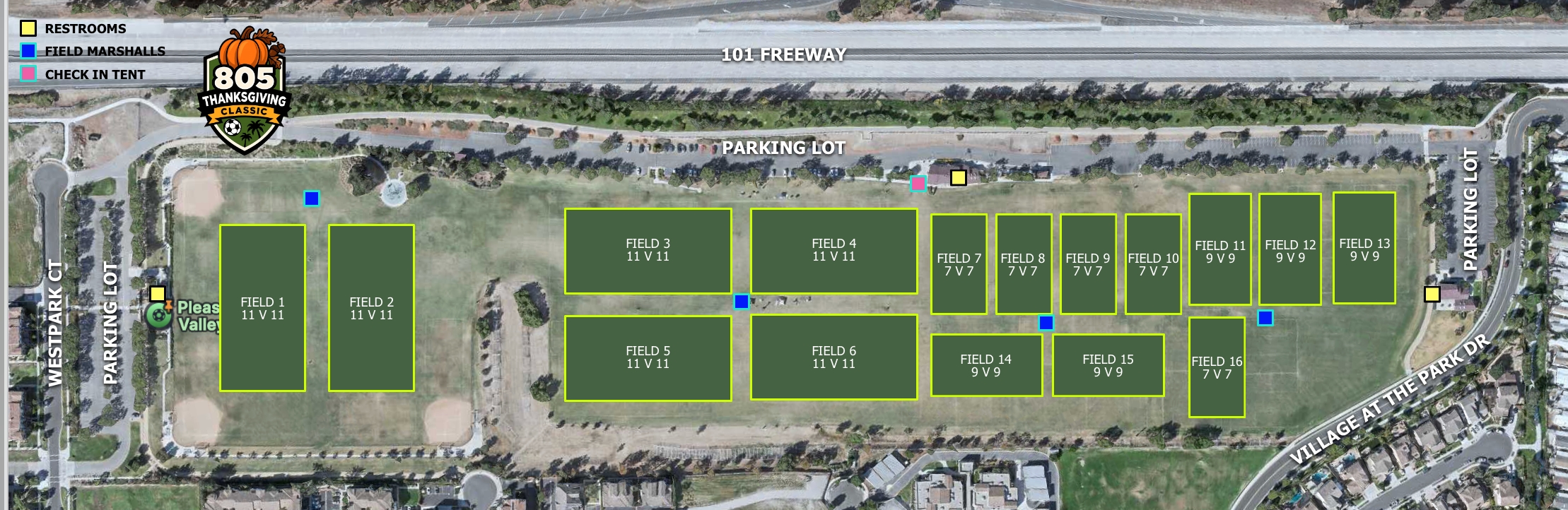 - Pleasant Valley Fields, Eagles Soccer Club or the 805 Thanksgiving Classic is not liable for any damage or loss to personal property that occurs at the fields
